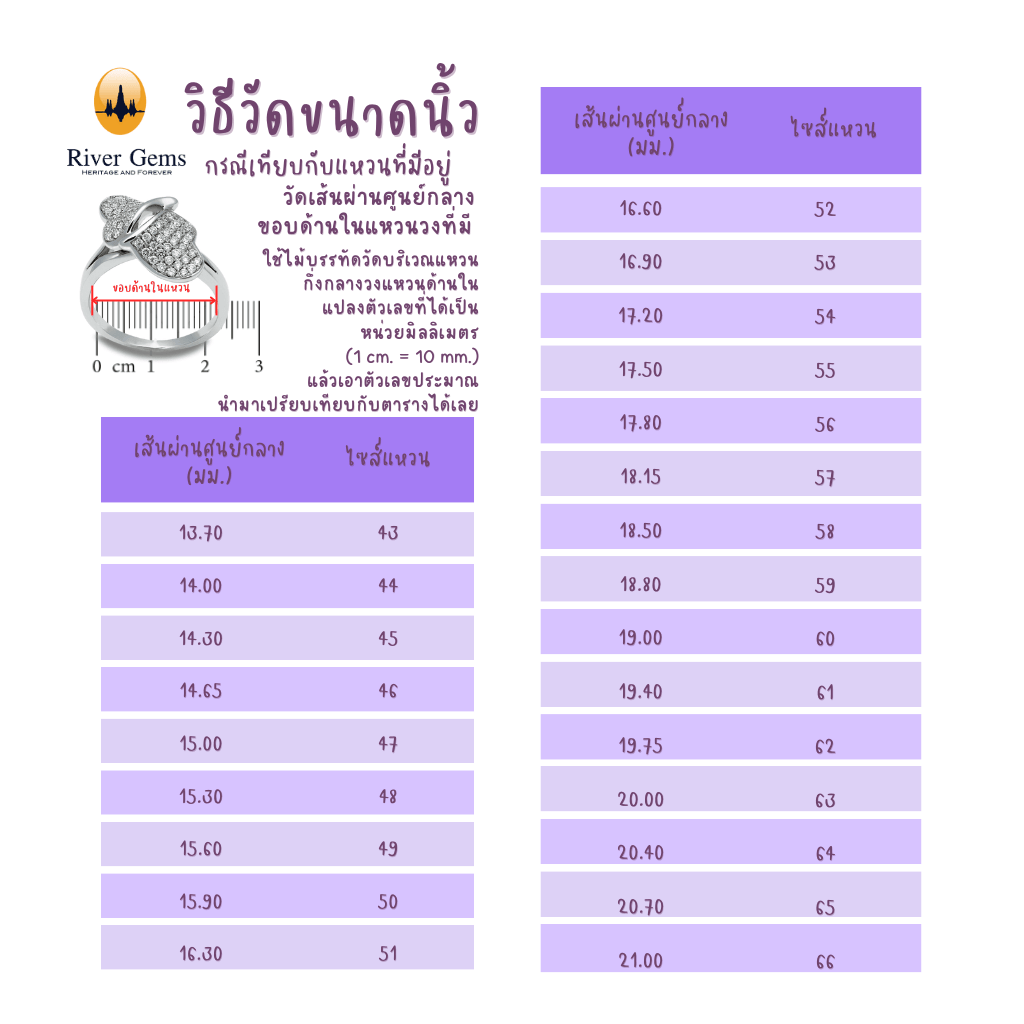 - นำค่าความยาวที่อ่านได้ มาเทียบกับตารางไซส์แหวน